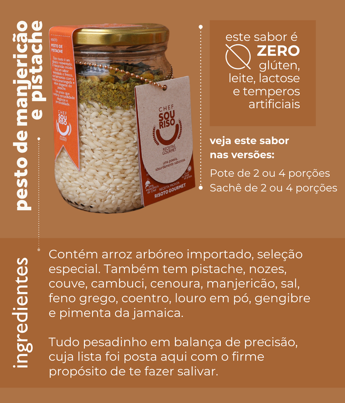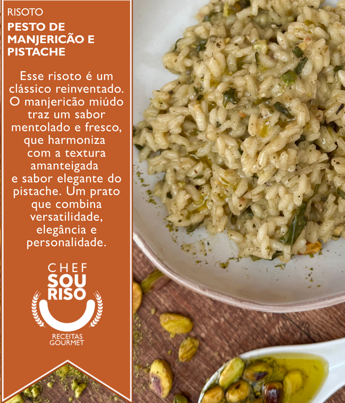 Risoto sabor PESTO DE MANJERICÃO E PISTACHE, o irresistível.